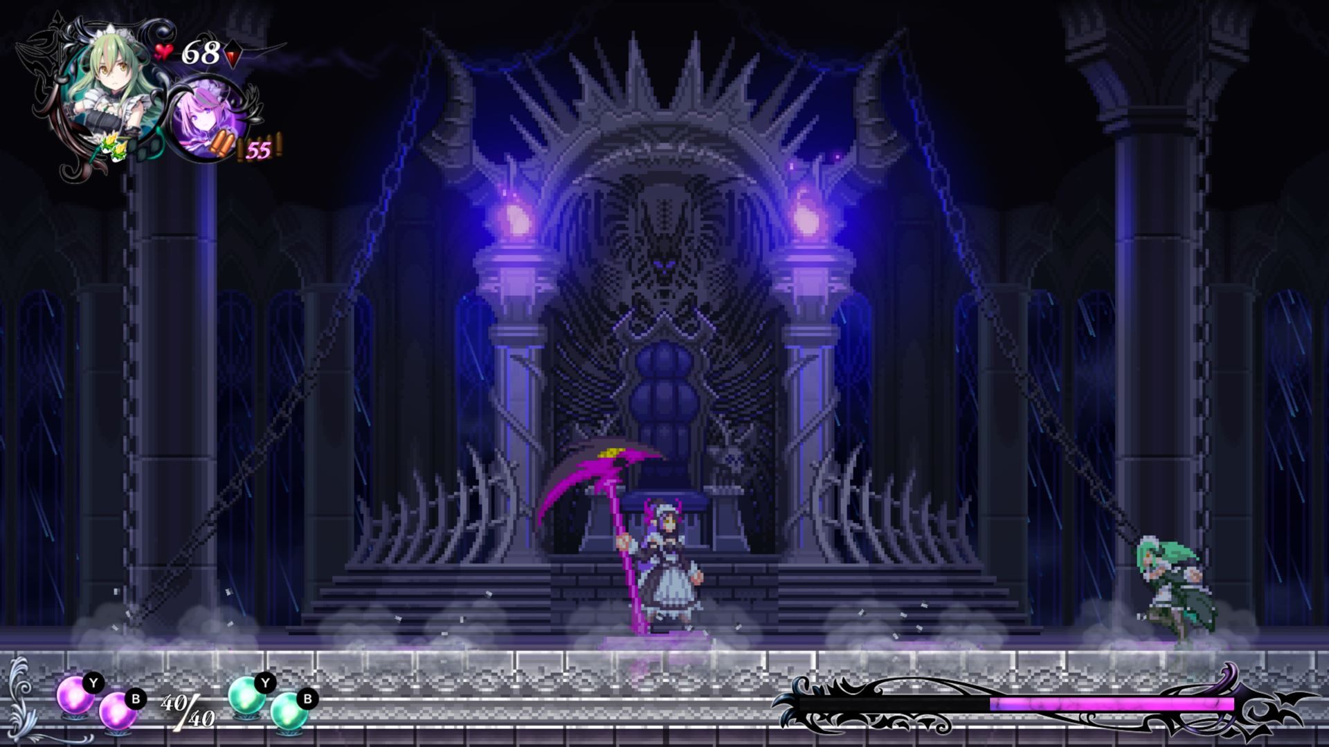 Unlike Megaman Zero and Azure Striker Gunvolt, Inti Creates’ new title, Gal Guardians: Servants of the Dark, throws fans into a title that borrows from the narrative beats of Castlevania 2: Simon’s Quest closely. Instead of playing the vampire killer, Simon Belmont and hunting down the remaining pieces of Count Dracula’s corpse to destroy him once and for all, you play two demonic maids that alternate between melee and ranged playstyles.