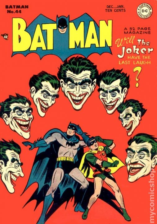 The Joker came on the comic scene in Batman #1 in 1940. In his first issue, readers were treated to a maniacal madman with super strong links to the Joker we know and love today. This Joker killed and left his victims with creepy smiles stretched across their faces. While the stories from this era lack the depth and sophistication of today’s works, Batman #1 introduced a Joker who was a holy terror to the people of Gotham.