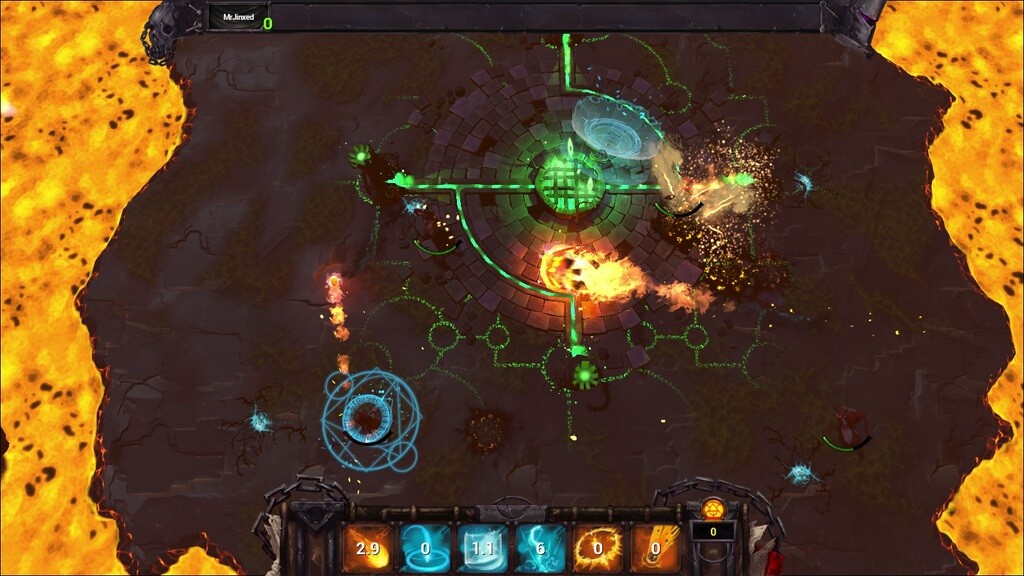 Warcraft 3‘s family tree is larger than most people realize. Spellsworn draws from a couple of names in this storied genealogy – specifically, the popular custom game mode Warlocks appears with a package of DotA style ability mechanics. Players engage in top-down arena mayhem amongst wizards well versed in their craft. The developers claims an element of sumo-wrestling is present in the mix, presumably meaning that blasting foes outside the ring (or into the lava) is a wise thing to do.