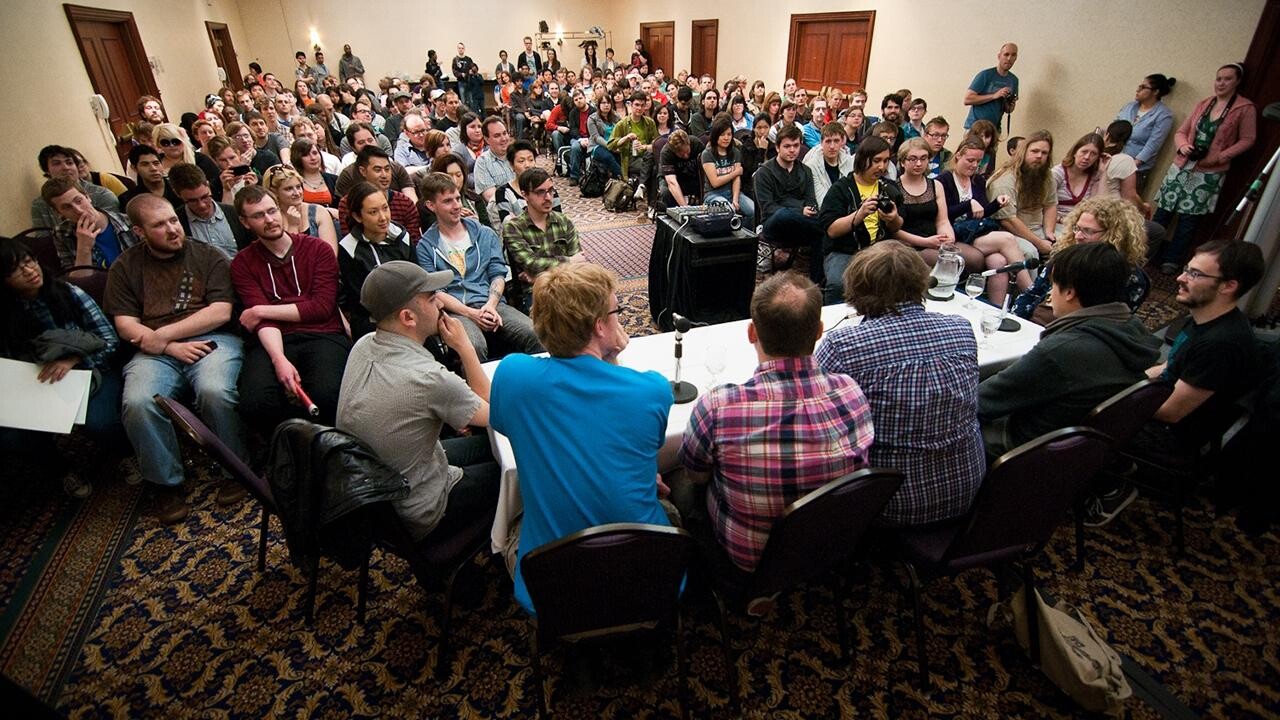 The spotlight on Dash Shaw and Paul Pope is only one of the many TCAF events that packed an impressive crowd. Each of TCAF’s events boasted an impressive attendance despite wind, rain, or the dreaded snow. This year, TCAF offered many panels studying comic making and its relationship with other arts. From children’s lit to Shakespeare, this year’s festival had it all, including a discussion about the connection between comic books and video games—a panel perfectly suited to the interests of C&G reps and fans.