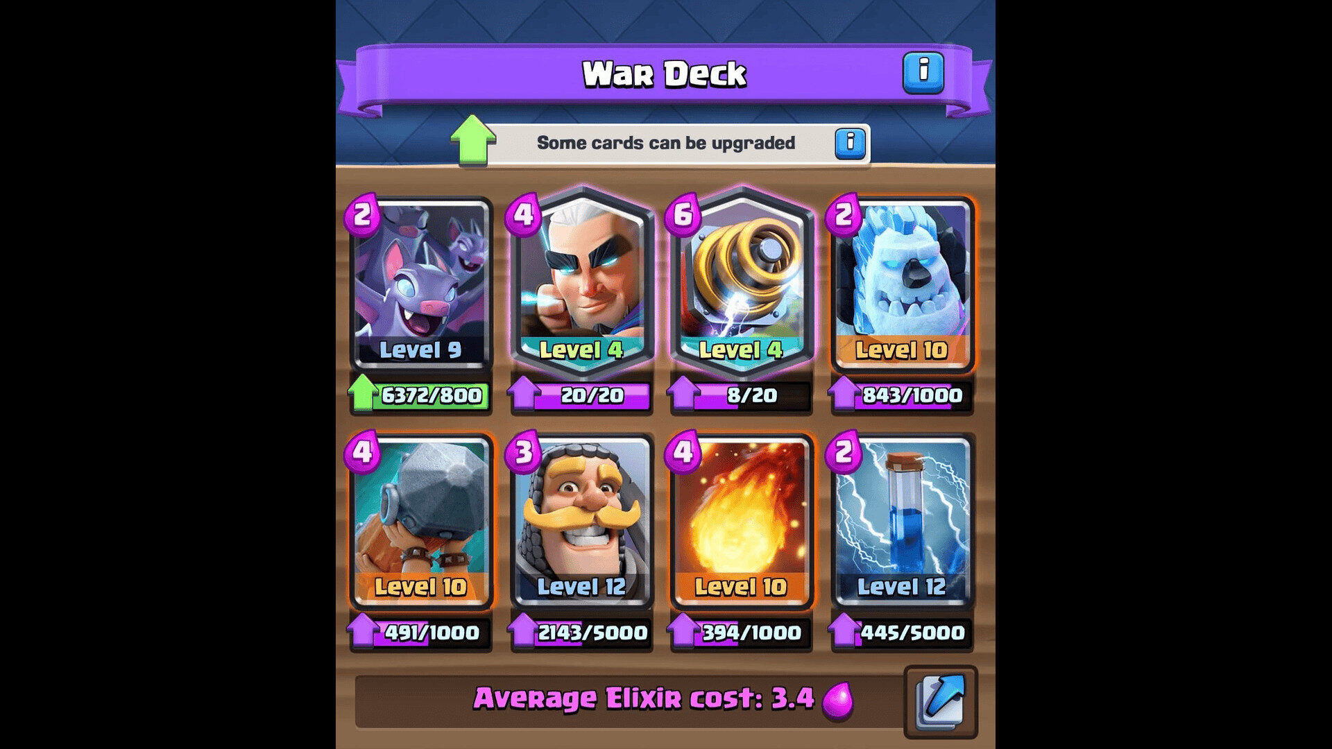 In the latest version of Clan Wars, each participant gathers cards during a preliminary phase. Your collection determines which cards you’ll use on war days. This means it’s smart to work on unlocking and leveling up various cards to keep your war decks flexible.