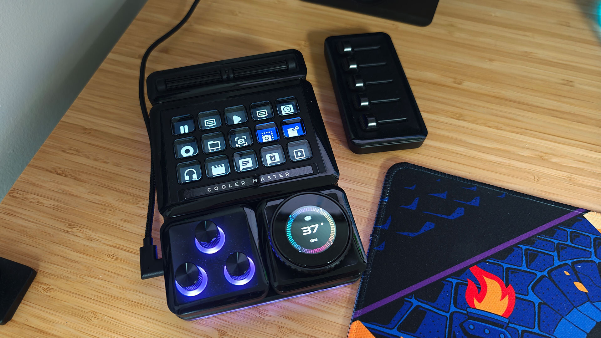 The level of control comes down to the impressive array of modules Cooler Master offers to choose from. The one most people will gravitate towards is undoubtedly the 15-key panel, which features vibrant IPS displays on each individual button. You can customize these with static images, animated GIFs, or even live video feeds. The tactile feel of the buttons is excellent, with a satisfying click that isn’t too loud for on-stream use.
