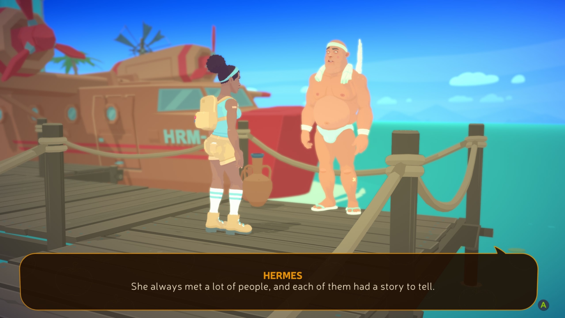 The overall vibe of the game was going for an easygoing feeling. At least, that is what I gathered from this demo. The puzzles were not too tricky, and the exploration narrative was fairly straightforward—nothing too frustrating. There were really only two characters I could talk to in this demo: The Oracle or Ora, and Hermes. If you know your Greek mythology, Hermes is typically a messenger god, and The Oracle or oracles would be women chosen by the gods through which divine advice could be spoken through them.