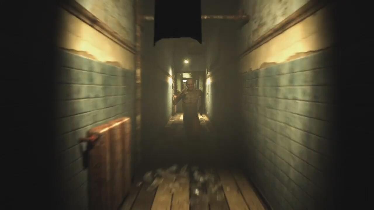 The demo—which was hands-on, complete with earphones—explains most of the mechanics quickly. This is essentially an adventure game with horrible death, and not a whole lot of light. Inexplicably, someone has left a bunch of batteries lying around in this asylum (or maybe their alarming frequency was there for demo purposes) so keeping the battery meter at healthy levels wasn’t too challenging. It was important to manage battery levels since much of the demo level didn’t have functioning lights, so relying on the night vision of the camera was often necessary just to navigate the maze of hallways.