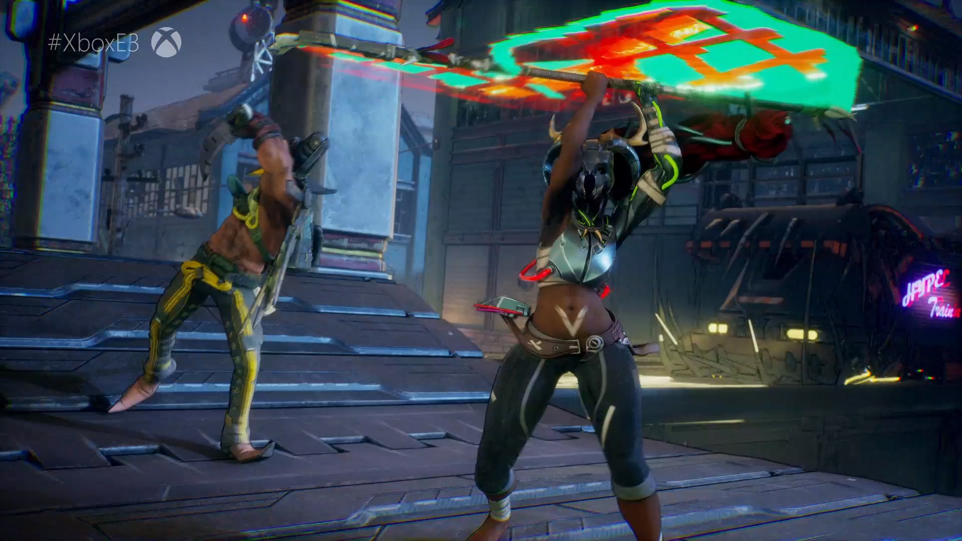 Bleeding Edge has a distinct cyberpunk aesthetic, with neon-soaked arenas and over-the-top character designs. The roster includes oddball choices like a granny witch and a dolphin piloting a mech suit. While light on content at launch, Ninja Theory plans to expand the game over time with new fighters, maps and modes.