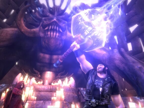 As you explore the open world, you’ll encounter all sorts of metal-themed creatures and locales. The visuals look like they were ripped straight from classic album covers, with mountains made of amplifiers and demon armies that wouldn’t be out of place at a KISS concert. Combat involves hacking away with your axe and shredding on your magical guitar to cast spells.