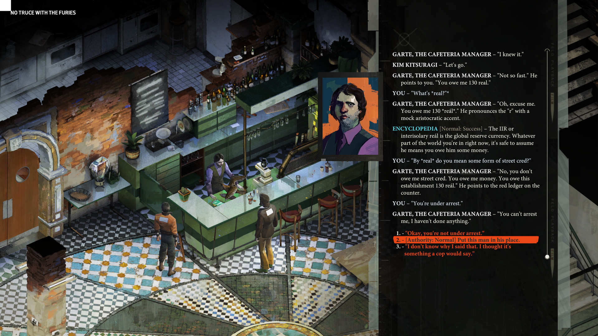 Disco Elysium’s completely original skill system makes your innermost feelings, doubts, and memories an integral part of every conversation. Level up your rational faculties, sharpen your wits, or give in to your basest instincts. What kind of cop you are is up to you.