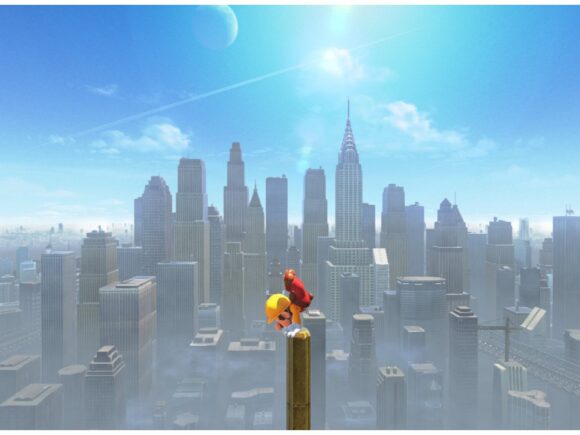 The game follows Mario on his quest to save Princess Peach from her forced marriage with Bowser. The game starts with Mario fighting Bowser on its aircraft. Bowers knock Mario off the ship and shreds his cap into pieces. Mario awakens in the Cap Kingdom inhabited with hat-like spirits and befriends one of them named Cappy. It turns out, Bowser also kidnapped Cappy’s sister Tiara, and now the heroes must chase Bowser through several kingdoms to save Peach and Tiara.