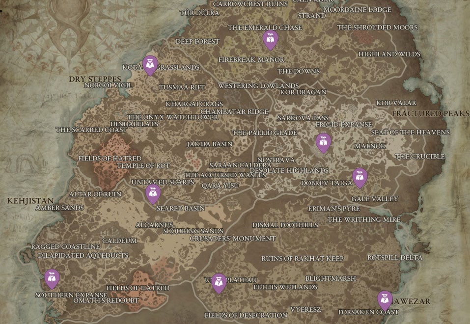 While their introduction might feel special, Purveyor of Curiosities are widespread across Diablo 4’s vast open world. You can discover them in all major cities within the regions of Sanctuary. Despite being scattered across various locations, their offerings remain consistent, enabling players to visit any of these unique merchants for a chance at legendary gear.