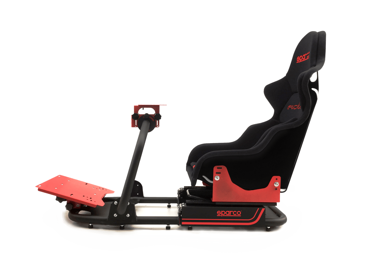 But if that’s not enough for gamers, Sparco has also developed the Evolve cock-pit. The Evolve is a state of the art, compact, racing seat that will put gamers in the same driving position as actual Rally and GT cars. Despite the Evolve’s compact chair, most people will be able to fit comfortably with room for adjustments such as: sliding guides for the seat, an adjustment system for rotation, sliding and elevation of the wheel support and pedals support and space-saving folding.
