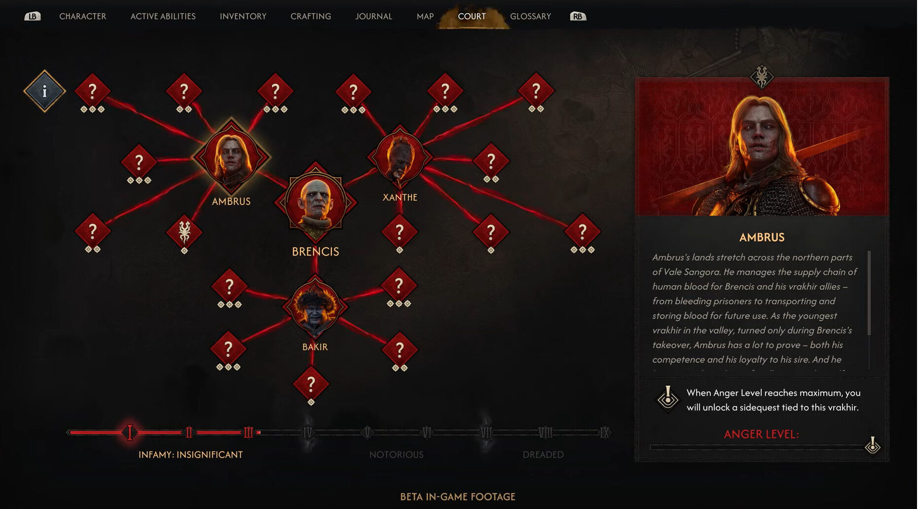 Combat has plenty of options to keep it dynamic, with basic skills like Charge to rush down enemies and Broad Swing to fell their hordes, and special skills like Burning Blood to stagger foes and apply a burning effect, or Voracious Bite to leap from the shadows and drain the blood of an unsuspecting soldier.