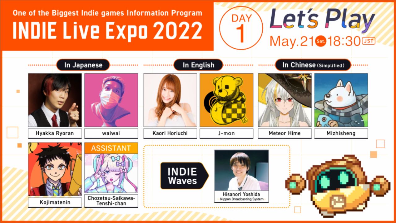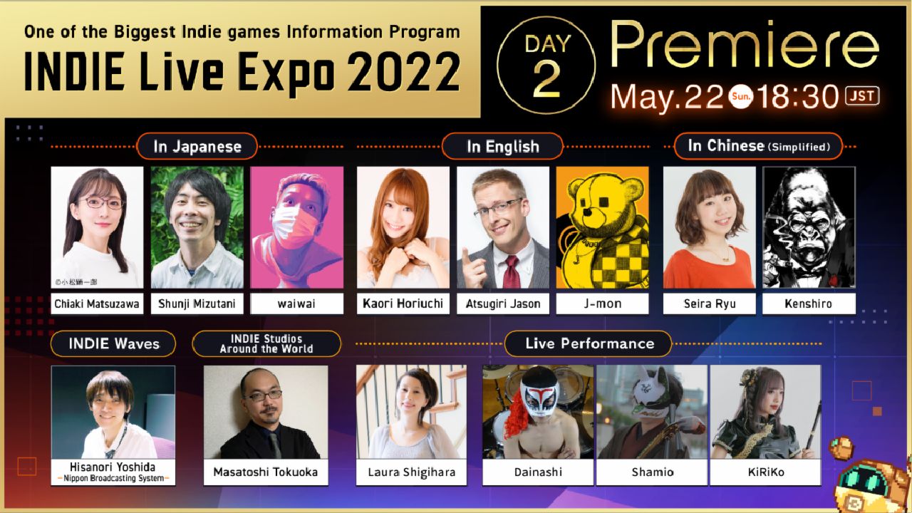 INDIE Live Expo 2022 streams each day in the two-day showcase starting at 5:30 a.m. ET in English, Japanese, and Chinese on YouTube, Twitch, Twitter, and Bilibil.