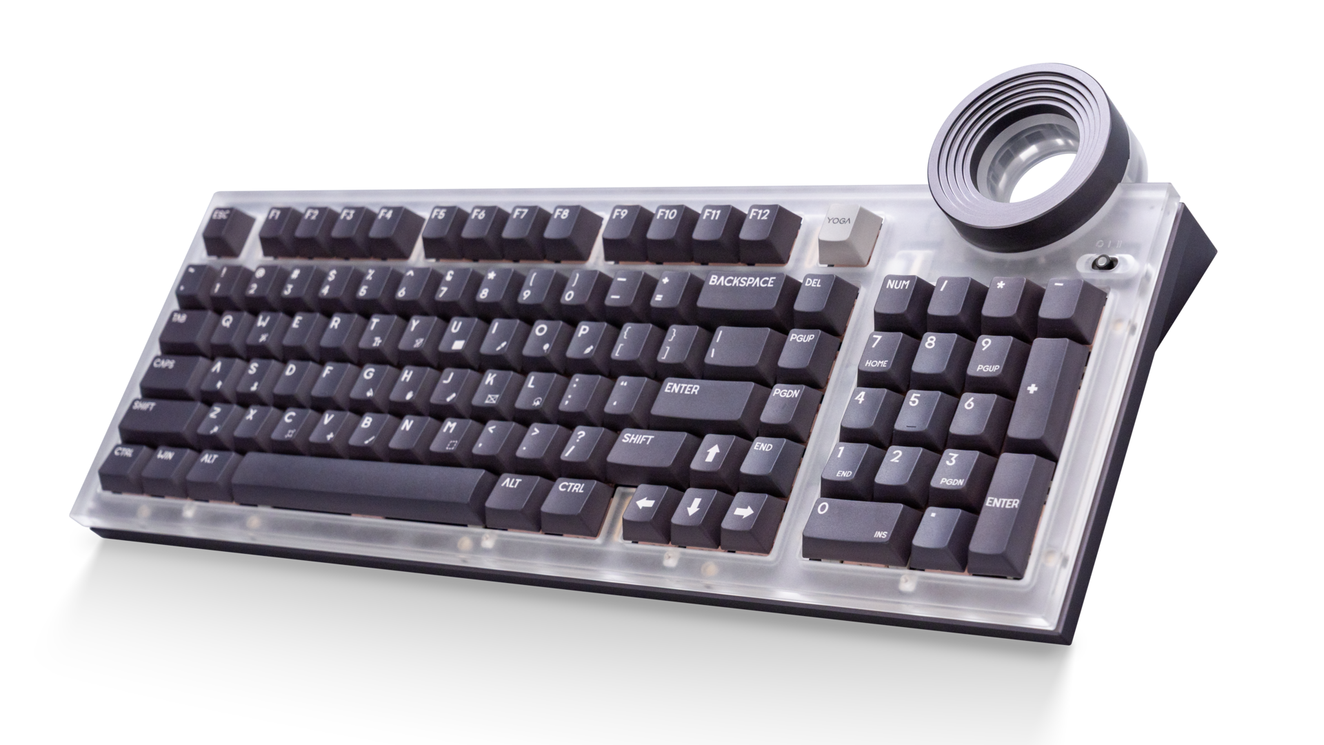 Continuing on Lenovo’s focus on content creation, they have made what looks like an 80’s neo-future keyboard, the Lenovo Yoga Creative Keyboard AngryMiao Edition. One of the first things that catches your eye is the massive orb scroll wheel on the top right of the keyboard, which actually has an interesting purpose. According to the press release, the wheel “allows audio and video creators to easily control the playheads of their editing software, speeding up the editing process with greater tactile feedback than with a mouse.” The keyboard also includes a yoga key, which has a multitude of uses, from switching between audio channels to synchronizing speakers.