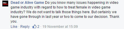 It appears that the events of the last couple of years regarding treatment of females in the gaming industry are what lead to this decision.
