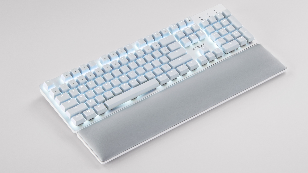 The Pro Type Ultra was based on consumer comments and feedback to bring a keyboard perfect for the office space with a quiet, ergonomic layout. The RGB lighting is replaced with a white LED backlight to still provide some light in dark spaces. The keyboard is wireless and contains silent mechanical switches with a coating that makes the keycaps a little softer than other boards. It also comes with a squishy, leatherette wrist rest to prevent wrist strain. The wireless connectivity can run off Bluetooth and through a USB dongle. It boasts over 200 hours of battery life and has its own charging cable, meaning no need to scramble to find AA or AAA batteries.