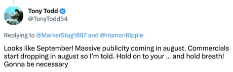 Todd writes, “Looks like September! Massive Publicity coming in august. Commercials start dropping in august, so I’m told. Hold on to your … and hold breath! Gonna be necessary” before it was deleted. Not much has been revealed about the highly anticipated sequel, except the story is a direct sequel to the events that occur in Spider-Man and Miles Morales.