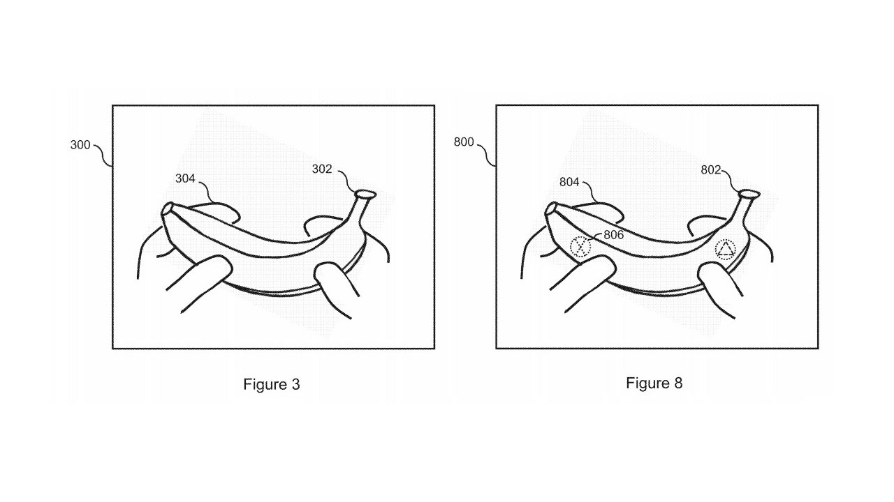 Not only does the patent focus on motion controls, but there is a section dedicated to mapping buttons directly onto your item — or banana — of choice. The camera will determine the location of the users fingers, thus being told where the buttons need to be placed on the item.