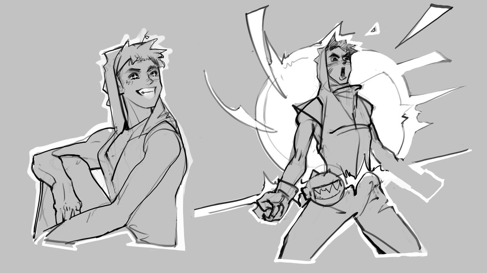 Overall, Miks has a stylish yellow and purple fashion look to him. The contouring lines make it seem like music staffs are draped across his body, from head to toe. I do not know how I feel about the geometric-shaped hoodie and shoulder piece. It looked like the designers wanted to add some 3D elements to make his clothing stand out, but it almost feels like he has sound dampeners on his clothes. It is on brand for his character, but visually looks strange.