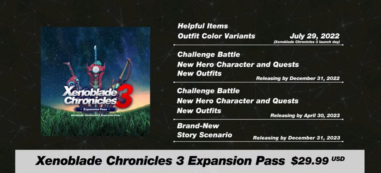 Nintendo has revealed in a Xenoblade Chronicles 3 focused Direct presentation that the upcoming third entry is getting a $30 Expansion Pass.