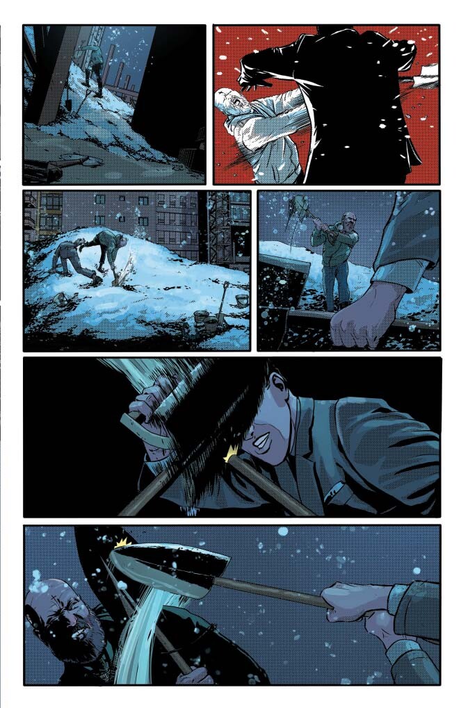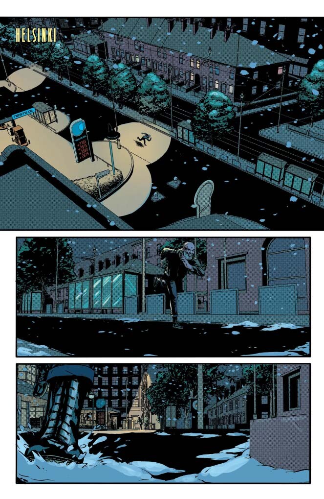 The opening issue of Ellis and artist Jason Masters’ arc entitled “Vargr” begins with a traditionally cold open: Bond is chasing a man through the dark winter streets of Helsinki. The man, it turns out, killed 008 and Bond is there for revenge. The rest of the issue returns Bond to MI6 where he slogs through several mundane conversations setting up his next mission in Berlin. It’s an issue that drags when it should be sprinting, and that would be fine if not for the utter lack of atmosphere. This is a world of paperwork and chauvinism, not action and intrigue.
