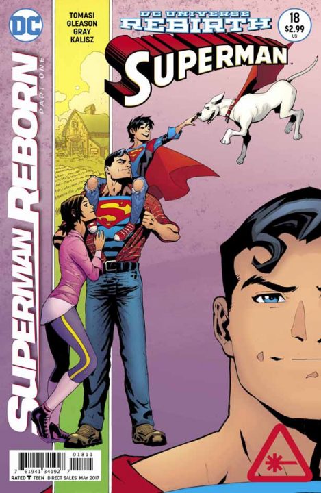 Superman Reborn is a four issue series that bounces back and forth between Superman #18-19 and Superman Action Comics #975-976. The story begins in Hamilton County, at the quiet home of Clark, Lois, and their son Jon. However, this idyllic scenario takes a turn for the worse when the ‘other’ Clark Kent comes snooping around. When Superman, Lois, and Jon go searching for the ‘other’ Clark, things begin to change. Jon slowly starts to disappear. As Superman tries to save his son, Jon completely disappears not only from their home, but from their photo albums. It’s as if he never existed. As Superman and Lois delve deeper into finding their son, they are transported to a wild world full of candy canes, unicorns, gumballs, and one irritated imp known as Mr. Mxyzptlk. He holds the key to Superman and Lois getting their son back. Unfortunately for the Man of Steel, he’ll have to jump through all Mr. Mxyzptlk’s hoops if he ever wants to see Jon again.