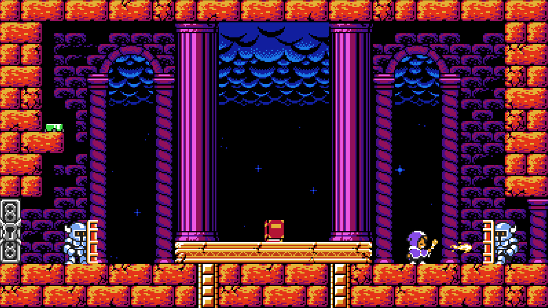 The enemies players encounter also feature some fun designs. They all have a playful look to them, favouring a childish nature even when facing armed skeletons or colossal knights. It feels in keeping with the NES’ pixel visuals, evoking a time when even the monsters that killed players all looked a little silly. However, many of the same enemies show up over and over, and while they feature smooth animations and sharp details, they do get a little tired by the end.