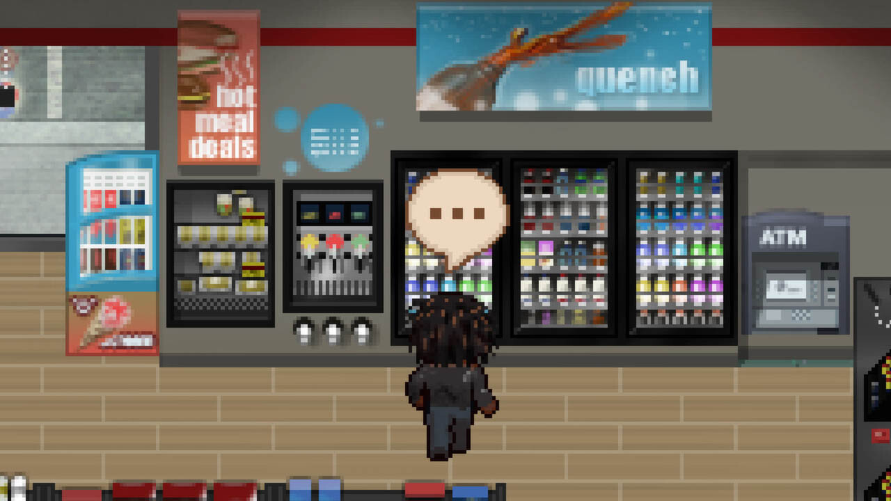 After a clever introduction that allows players to choose the hero of their story by toasting one of the guests attending a house party, Always Sometimes Monsters jumps ahead in time to the protagonist’s present day life. Regardless of who has been picked, the plot’s unseen period hasn’t been kind to the main character. S/he has broken up with their partner, is struggling to advance their career, and is financially destitute. From this point on, the game becomes a quest to simply figure life out. The protagonist needs to make money, decide whether passion or economic security is more important, and help friends through tough times (like paying for medical care or dealing with a troubled marriage). Always Sometimes Monsters is about exploring the nooks and crannies of cities, trying to make the best choices in situations where good decisions are often unclear, and finding a way to thrive on the margins of society. As my character—a young woman hoping to finish a book and nail down a publishing contract—pursued her dreams, she also had to hustle at day jobs to afford rent and be able to buy stamina-replenishing food and drinks. She was forced, at several points, to compromise her morals in order to earn a paycheque, making ecstasy runs for club kids, working as a union scab, and facilitating an old man’s gambling addiction.