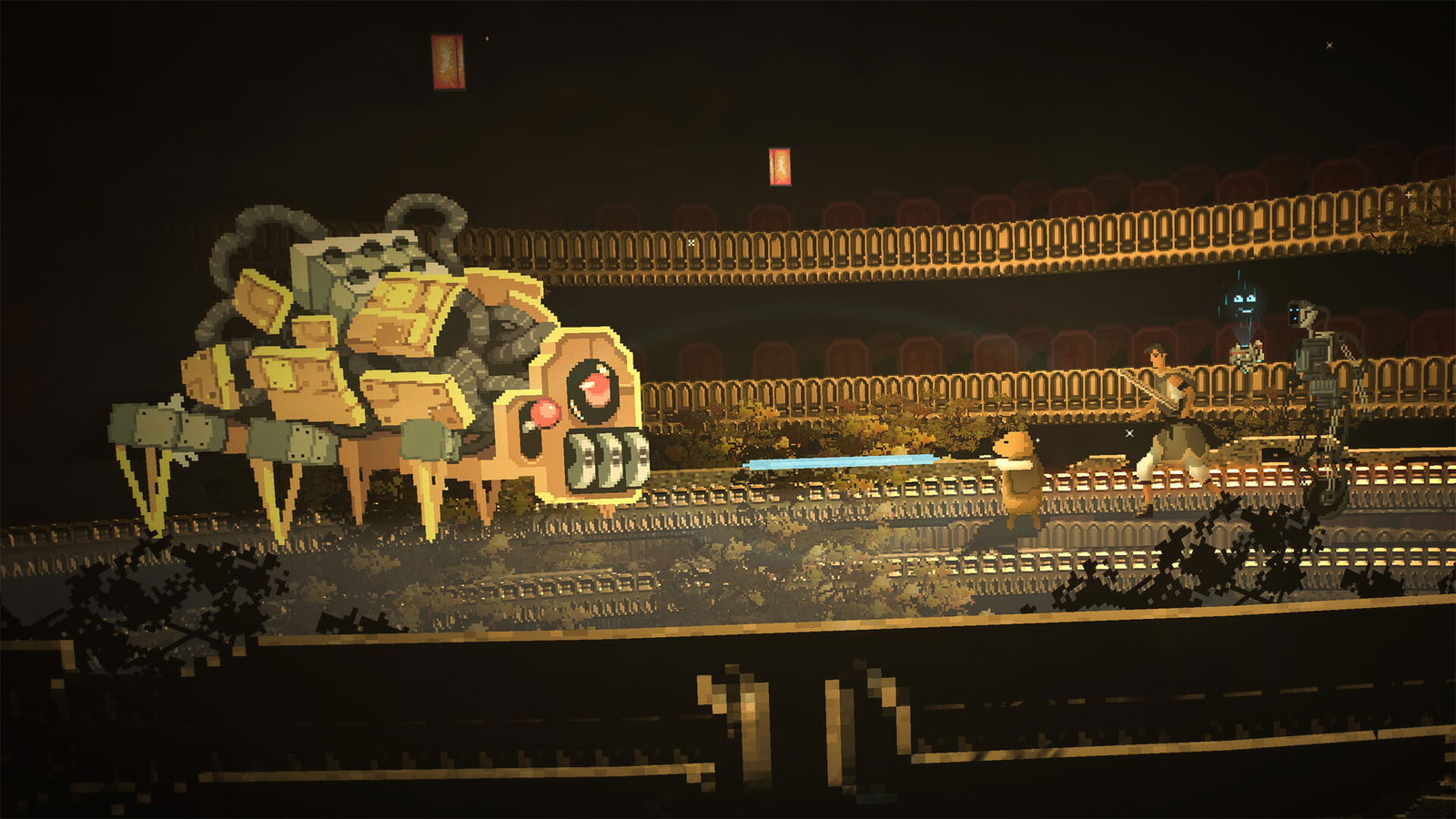 Visually, Beyond Galaxyland has a really unique style which lands somewhere in the middle between the hyperdetailed 16-bit style of games like Narita Boy, and old 90’s MS-DOS games like King’s Quest. I wish I could pin down a name for this style—initially reminded me of Sheltered for having a very similar style. Every world has an incredible amount of detail and is incredibly stylized, utilizing a wide variety of colours and being brought to life with dynamic lighting and pixel effects.