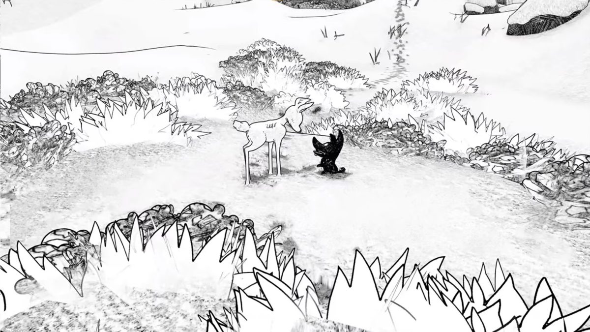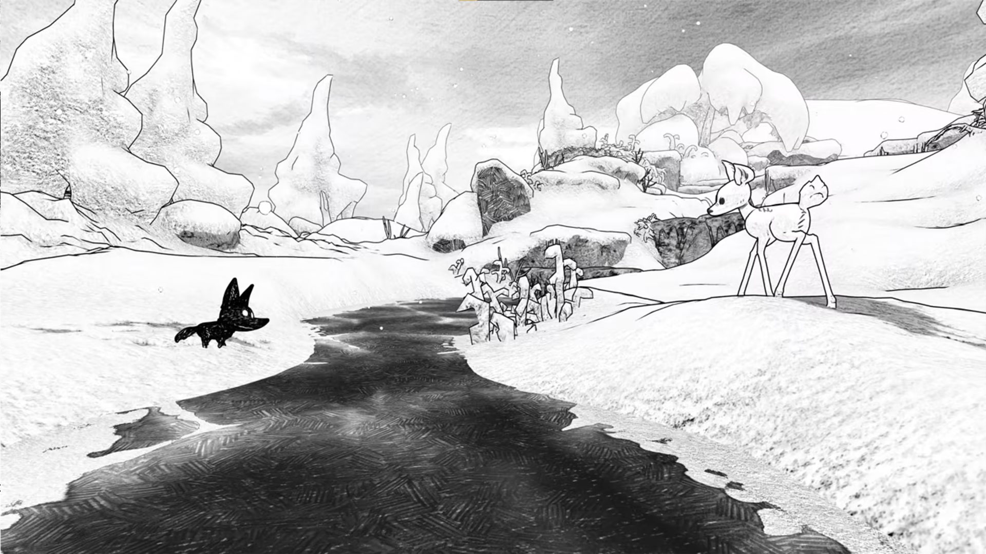 Furthermore, the one thing the game has in spades, an incredible art style, is almost completely lost while playing in handheld, as the resolution muddies a lot of the game’s finer details. Blanc utilizes a brilliant pencil-shaded aesthetic that uses beautiful lines and shading to provide the details that beautifully compliment the game’s snow-covered world—much like drawings, it’s coming to life on a sheet of paper. Backing this minimalistic art style is a quiet, minimalist score that uses simple piano keys to punctuate each scene and add a bit of wonder to it—similar to the soundtrack in Breath of the Wild.