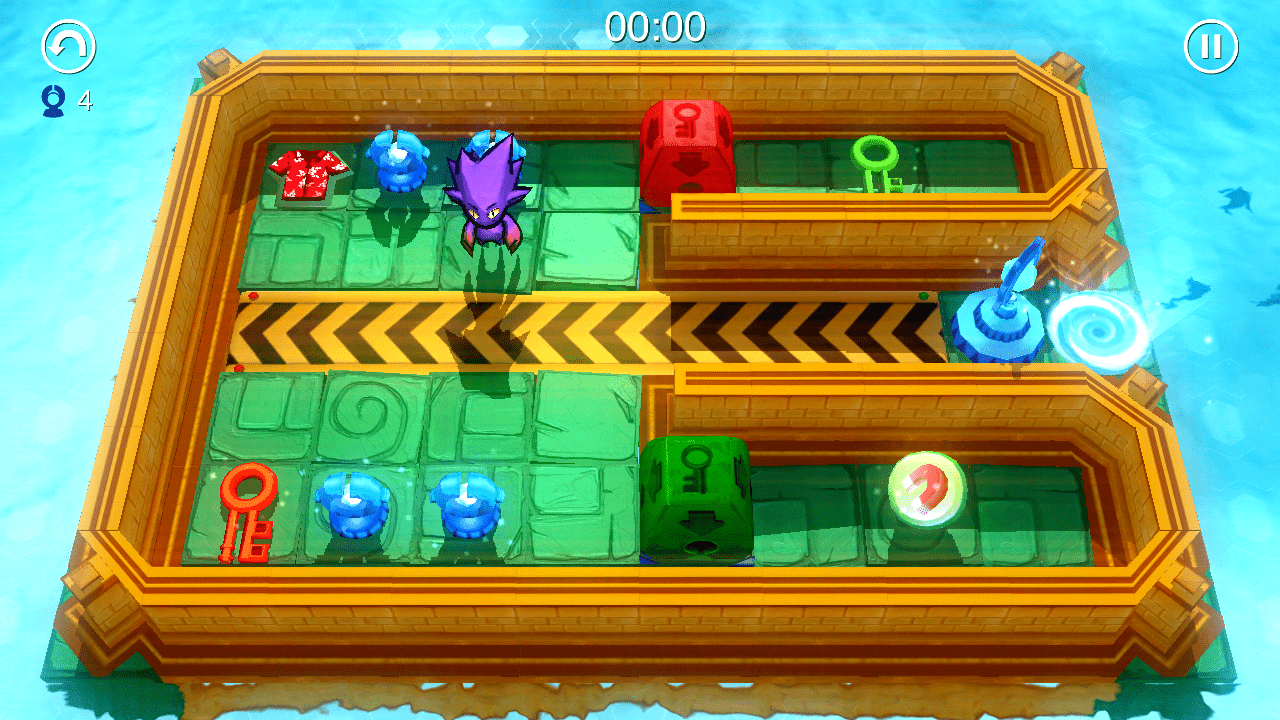Another really smart design choice is the time-reversal mechanic, which greatly reduces the frustration and tedium that often accompanies these types of games. Rather than forcing you to restart a level if you, for instance, push a block the wrong way, Chuck’s Challenge 3D lets you tap a button go back one step as many times as you’d like. This is an absolute godsend on the more complicated stages; however, it also has the undesirable side-effect of allowing you to cheat your way through action or timing stages without skill or forethought.