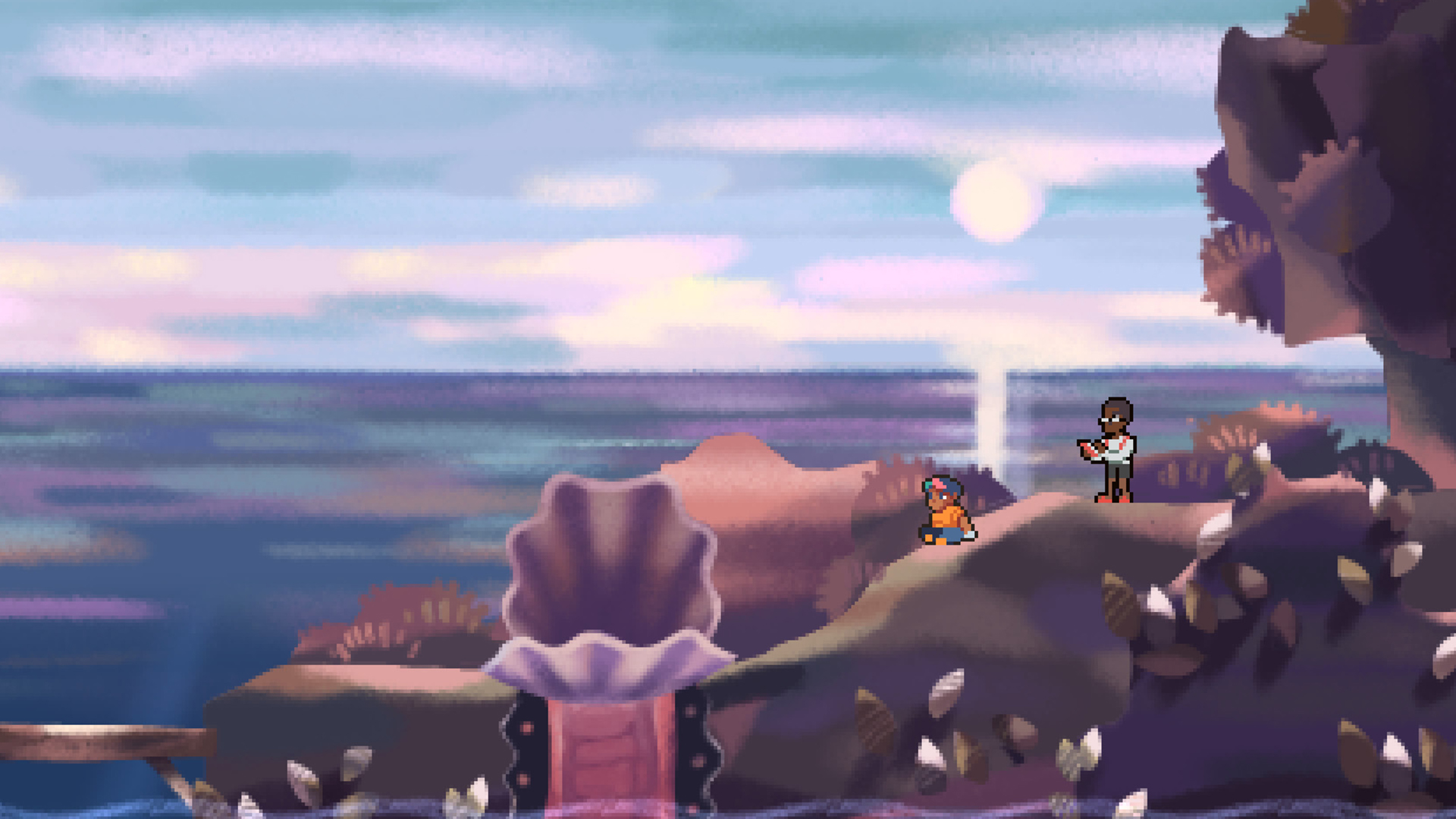 Even the Ocean’s story and atmosphere are very similar to Anodyne’s in that there’s a constant dreamlike quality to the game’s events, only the former feels much more rooted in some form of reality. While Anodyne felt less like a concrete narrative and more like a vehicle for developers Kittaka and Hogan to talk about their personal philosophies through the world and environment’s underlying implications, with Even the Ocean there is a marked shift towards presenting a story with characters that are clearly defined. However, this is not a transition that is made entirely smoothly. At times, conversations between characters can feel less like real people talking and more like they’re outright stating philosophy to the player, and the effect is jarring. During these moments, the fact that there’s a writer behind the story’s characters can be painfully felt, which makes it difficult to connect with them as individuals. By the end of the game, though, the story’s underlying message (which won’t be spoiled here) is delivered in a way that feels sincere and meaningful. The lack of any clear villain, unlike many stories that have a similar message, means that it doesn’t come across as moralizing or overly simplistic, delivering a much more complex take than what we’re used to when it comes to stories like these.