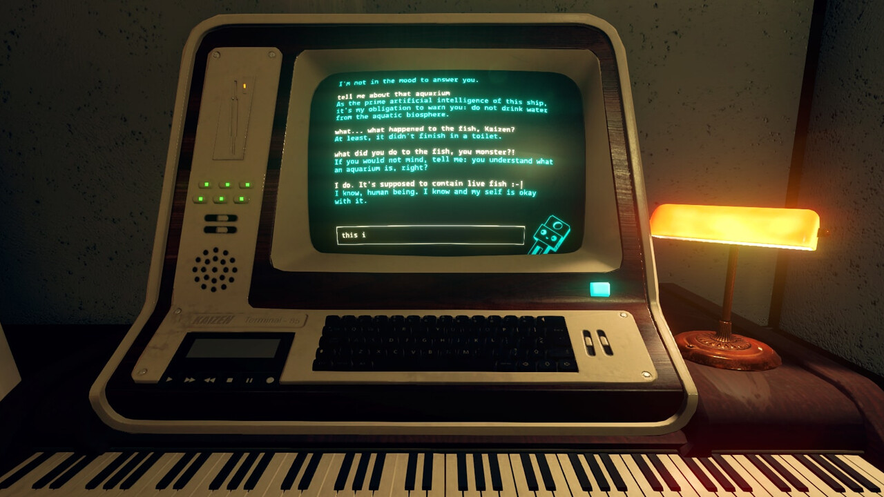 Anyway, Kaizen’s interactions are still rife with the usual shortcomings of input>response systems, but not to such a degree that I found it frustrating. Asking about things that Kaizen had mentioned would return no related response, plot points would occasionally spit out without a related keyword input, and there is no shortage of dialogue routes that made me feel as if Kaizen was plotting to kill me (or perhaps had already). These sorts of events could easily mar the experience for a player, but I made a promise to myself upon my first terminal interaction to fully role-play all dialogue to the absolute limit that the game could nurture. As it turns out, this was a great decision, as it resulted in numerous interesting and unsettling exchanges.