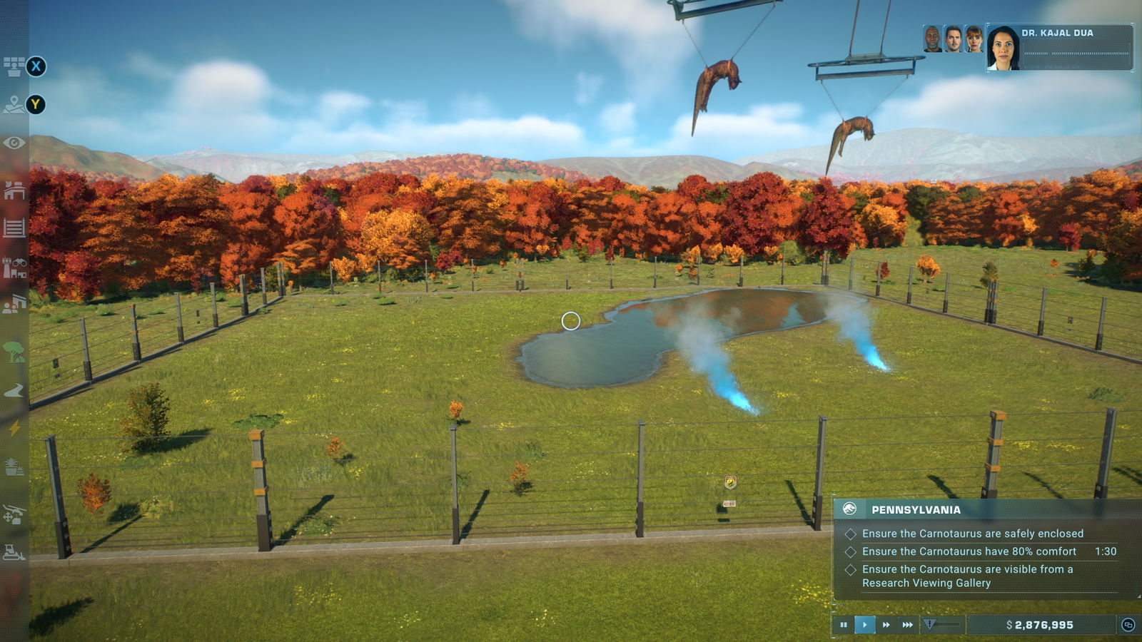 There were a few times I found myself stuck, but more often than not, it was because I missed a step somewhere, and there are a LOT of steps; medical scan dino, tranq dino, transfer dino, heal dino, transfer dino back, scan dino again, rinse, repeat. Toward the beginning of the Campaign mode, a mission would not complete. It turns out there was a small creature in the cage with my dinosaur, so technically it wasn’t “enclosed safely.” But the game hadn’t mentioned anything about other things being able to enter the cages, so I had no idea what was going on.