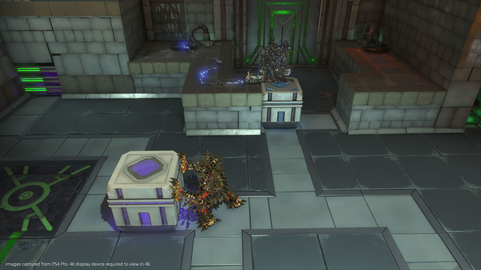 Each stage may involve a few different types of gameplay. Mostly, there are beat ’em up sections that play like baby’s first God of War with a smattering of very simple puzzles and surprisingly enjoyable platforming sprinkled in between. Solving puzzles usually involves simply pulling a crate across the screen to be able to jump to a higher ledge, or pulling levers to open doors—nothing exciting or challenging. Platforming, however, is probably what Knack 2 does best, or at the very least these are the bits I actually liked. Jumping between moving platforms and avoiding electricity or fire while finding hidden chests and XP along the way is a joy, although a too infrequent one.