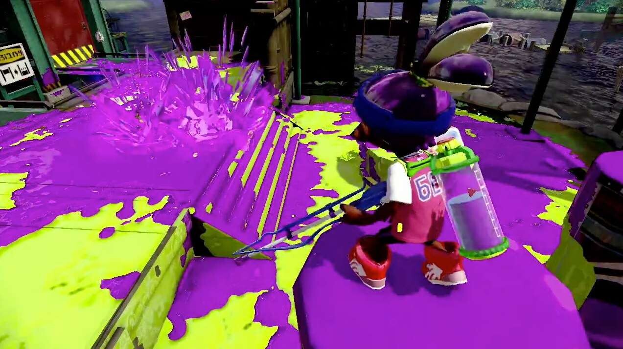 You’ll control your little inkling in the usual dual-analogue way, except vertical vision is controlled by the motion of the gamepad. At first, this feels a little unnatural since it flies in the face of convention, but you’ll very quickly find it becomes second nature and rather clever. A live map is also featured on the gamepad at all times, showing players which areas have been covered by ink. This is a vital little addition in the heat of competition that’ll help as the timer wears down. In addition to running around and firing off ink to your heart’s content, you can also transform into a squid and ride through your ink stains at top speed.