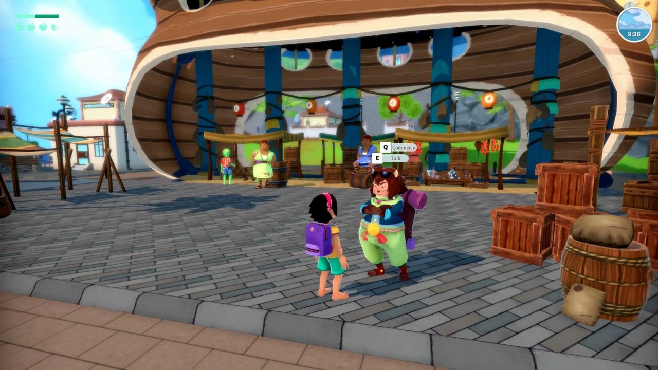 Summer in Mara tells the story of Koa; a young, human girl who is found after a shipwreck by Yaya Haku—a woman from the fish-like race known as the Qüido, who becomes Koa’s adoptive grandmother. After a montage cutscene—which plays like the game’s opening cutscene, but I think, also delivers key plot information—the game picks up with Koa, now a bit older and living on the island herself. After meeting a strange shell person named Napopo, she sets out on an adventure to restore the ocean of Mara, and discover the whereabouts of Yaya Haku.