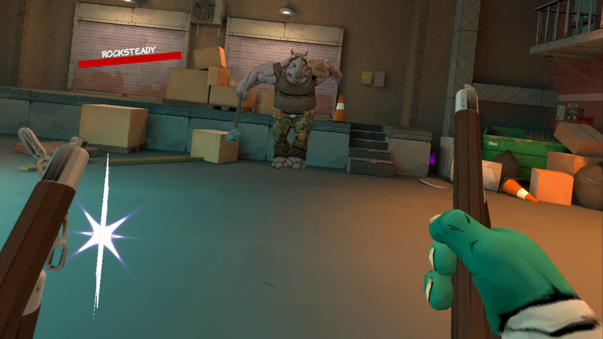 Combat in Teenage Mutant Ninja Turtles: Empire City is serviceable, but lacks oomph, with each connecting shot often feeling hollow, reminiscent of the bygone days of the Nintendo Wii more than a modern VR brawler. Thankfully, each playable turtle feels fairly distinct, despite all their unique character traits being reduced to simple stat buffs and inventory bonuses. Individual weapon types in Empire City feel distinct and true to each warrior’s fighting style. A pause buffer or even a comicbook-inspired action bubbles per hit may have helped with the otherwise tepid combat feel of the experience.