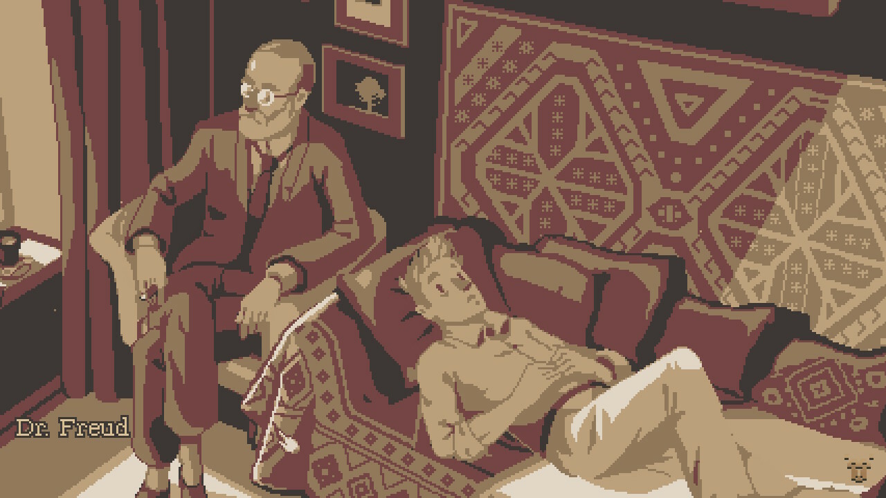 Right off the bat, I was drawn to The Lion’s Song solely due to its striking art direction. I’m a huge fan of contemporary pixel art and The Lion’s Song’s monochromatic aesthetics were something I found immediately appealing. In other words, I totally judged a book by its pixelated halftone cover. Little did I know that what lay inside was a deep and rich narrative spread across 4 episodes, all intertwined together in a natural and cohesive story full of heart and relatable characters in an otherwise, unrelatable but beautiful depiction of Vienna in the early 20th Century.