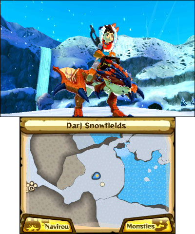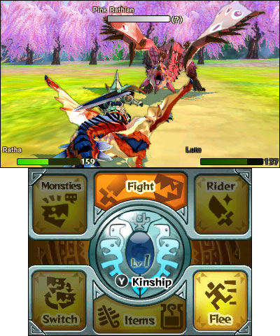 When I first looked at Monster Hunter Stories, I was expecting the game to play like a Monster Hunter version of Pokémon. I’m so glad this proved to not be the case. The immediate difference between the two is that when you get into a battle, you aren’t controlling your chosen monster or “monstie” as the game calls them. Instead, you control your own weapon wielding avatar in order to fight alongside your AI controlled monster partner. Battles in Monster Hunter Stories use a rock-paper-scissors mechanic between three types of possible attacks. Different monsters follow along unique combat patterns which will mean that one of the best ways to fight effectively is to study and learn how each monster will come at you, not unlike past Monster Hunter games. My only complaint about this system is that it can become a bit repetitive once you figure out how to defeat one type of monster. Luckily there is a fast forward button that can be used during battles.