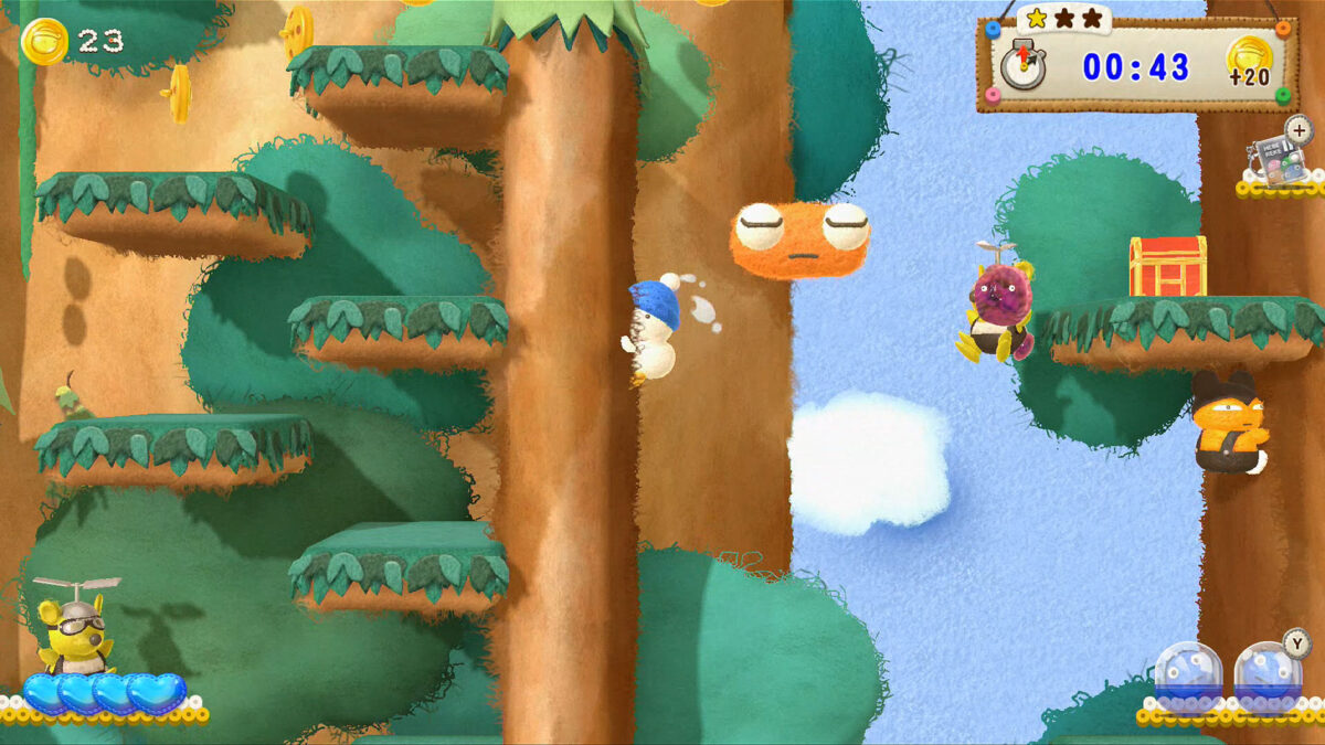 Like I said at the top of this review, the game’s visuals were what hooked me the most. Ufouria: The Saga 2 has a craftwork aesthetic that makes the whole game feel so genuine and charming. From the way you can see the little wool threads on every character, to the way environments all look like they were cut out from felt, to coins all looking like little buttons, and even to the way little character icons and text boxes look like craft beads—every aspect of Ufouria: The Saga 2’s visuals brings the game to life in a playful, earnest way.
