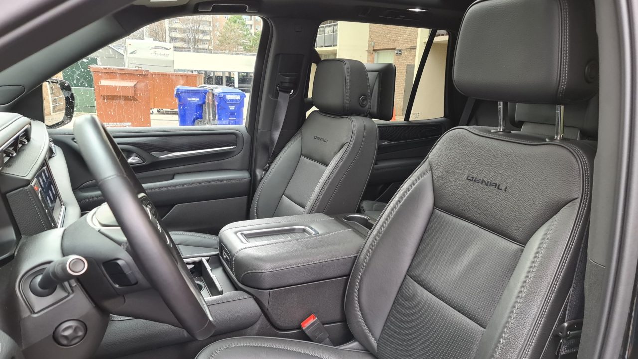 With all that weight, you’d think that it would handle like a yacht, but that wasn’t the case. Despite its weight, the 2021 GMC Yukon Denali was able to nimbly manoeuvre around other vehicles in traffic and having the blind-spot indicators on the side mirrors helped that even more. The only issue I had manoeuvring the vehicle around came when I was trying to find a parking space in a crowded parking lot. Pulling into parking spaces when there are vehicles on both sides of the spot made things difficult, especially when you need to pull as far to the other side of the lane to be able to turn into the spot you want. Let’s just say that the turning circle for the Yukon Denali was shockingly large.