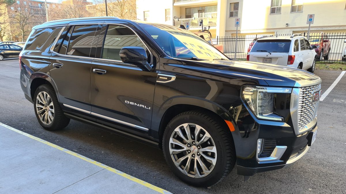 So, when GMC approached us to see if we’d like to test the 2021 GMC Yukon Denali, we obviously said yes! This particular model was the diesel engine package, but that was just fine with me. I only had to put fuel in it once, and that was the day we returned it after a week’s worth of testing. GMC say the fuel tank holds around 24 gallons (~91 litres), but we didn’t have to put even close to that amount in.