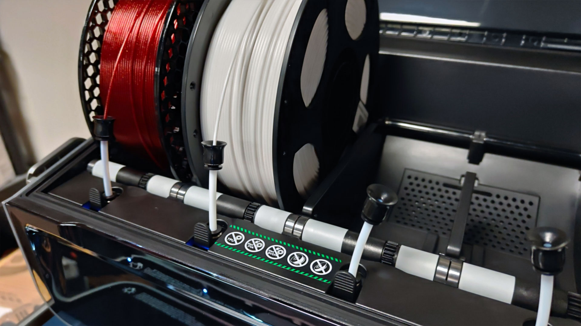 Two AI‑powered cameras monitor the print: one inside the chamber to detect issues like loose filament or a missing plate, and one on the toolhead to track how well the plastic is flowing. Over long tests, this setup helped the printer earn a reputation for steady, low‑stress printing.