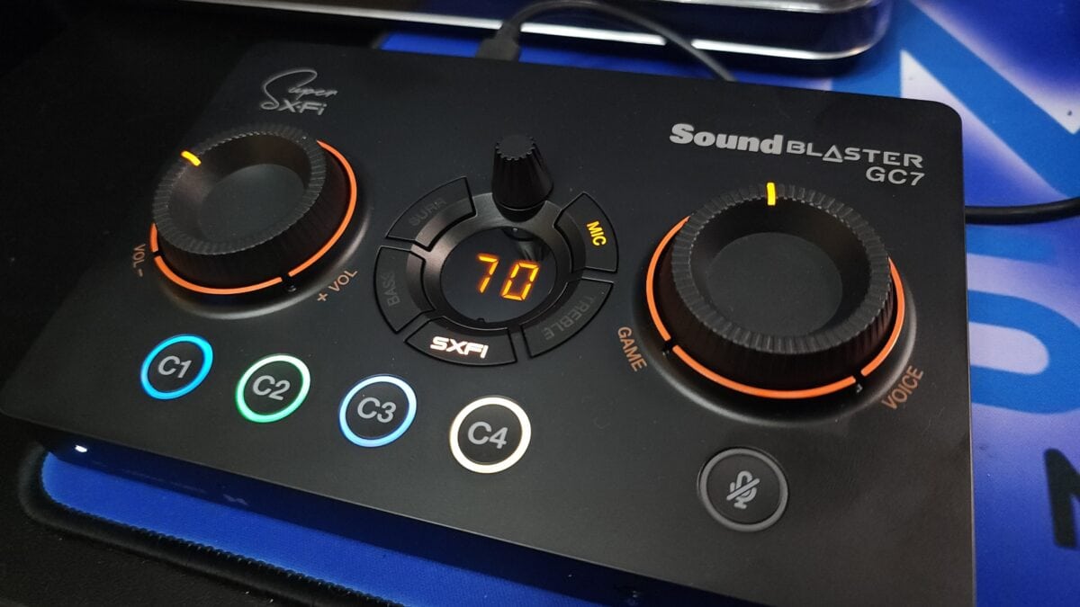 Audio control at your fingertips is key for any gamer or content creator. The ability to take all of your sources into one device and manipulate the mix and the output, something small that can sit to the side of the desk and not take up too much landscape, and overall ease of use makes for a better streamer and, more often than not, a more alive gamer. The people at Creative found a… creative solution for this with the Soundblaster GC7, a USB DAC (Digital to Analog Converter) with a ton of on-board control and audio enhancement to increase your overall experience.