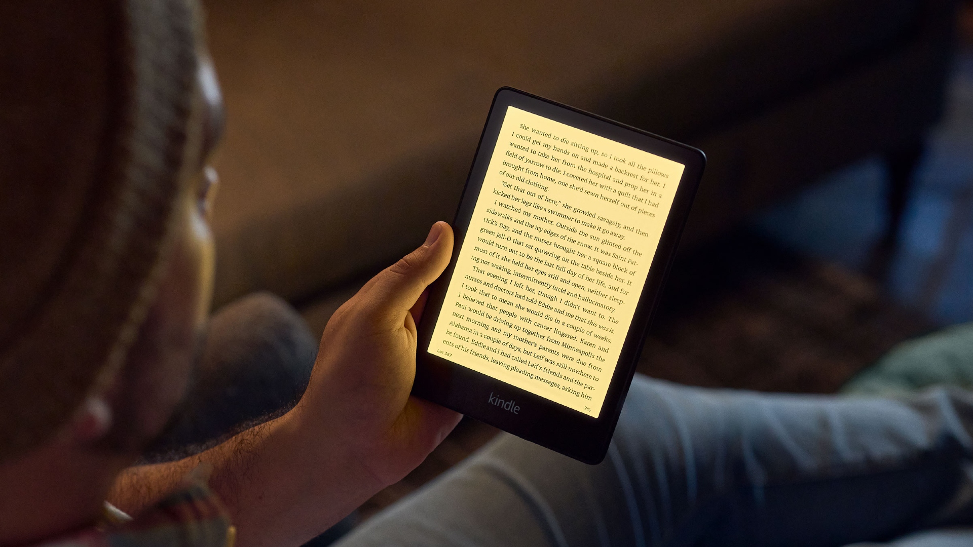 The Paperwhite hits a sweet spot in design: big enough to see the words without blowing out the font on its 6.8” display, but small enough to hold for extended periods. Its edges offer enough room to simulate the experience of holding a paperback open with your thumb. Sans case, it’s incredibly light—only 7.23 oz.