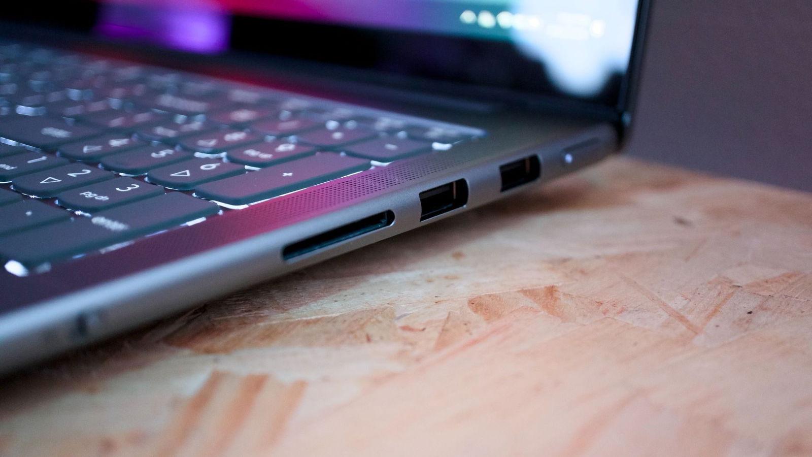 The Pro 9i comes equipped with a solid selection of I/O to work with as well. The left side contains Lenovo’s proprietary power connector, an HDMI 2.1 port with support for up to 10K@30Hz, 2 x USB-C (Thunderbolt 4) with power delivery 3.0 and DisplayPort 2.1 and a combo headphone/mic jack. The right side houses two additional USB-A (5Gbps) ports and an SD card reader.