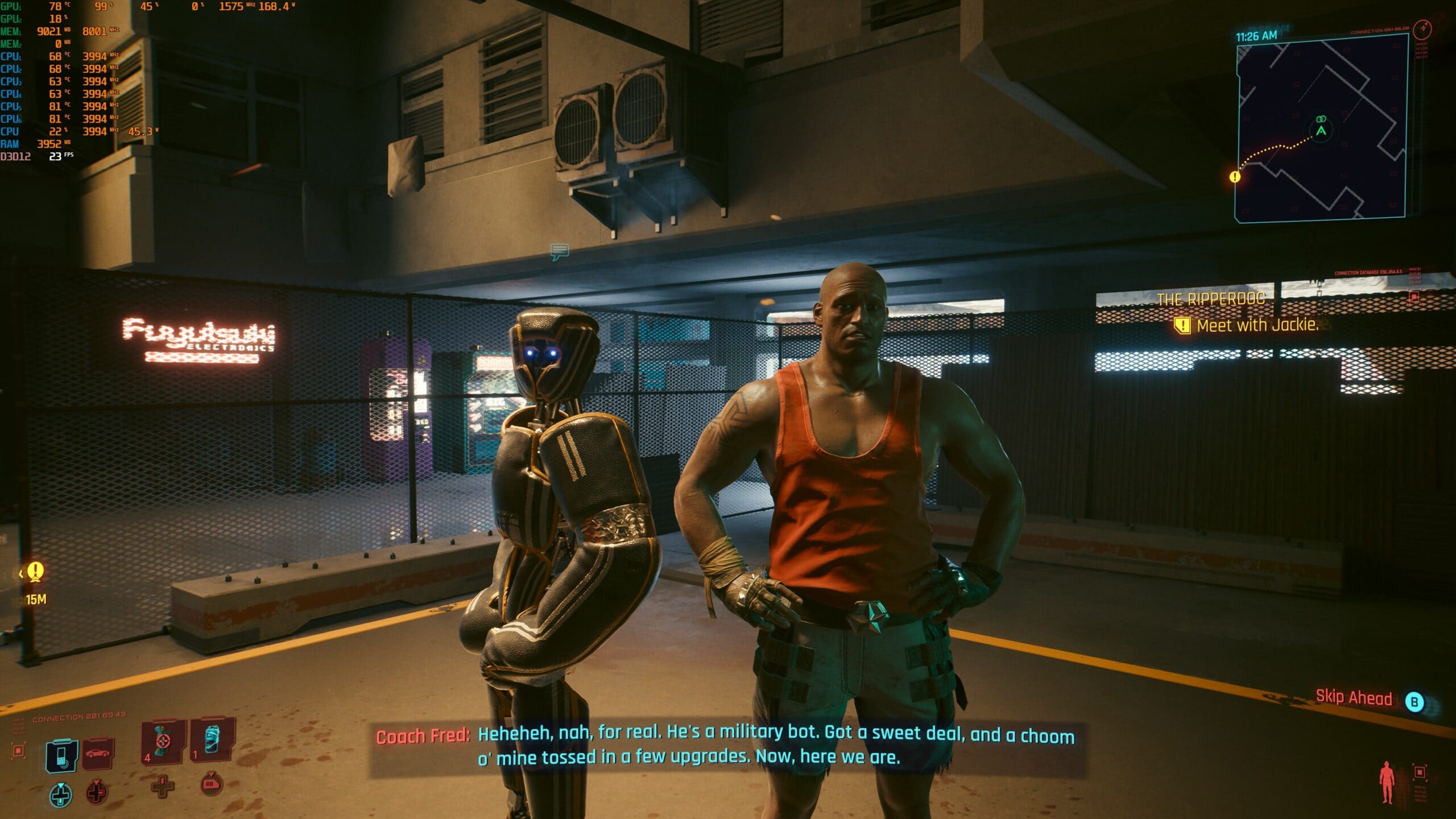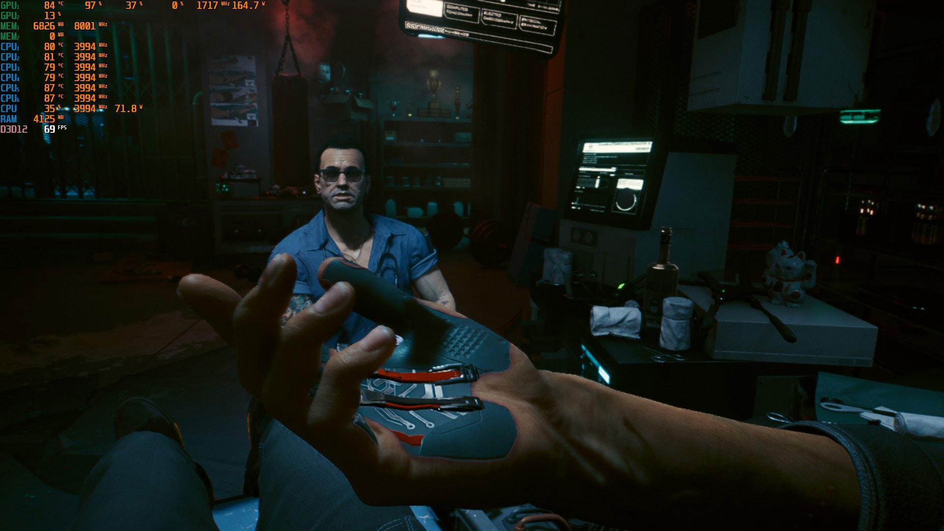 Cyberpunk 2077 didn’t impress at 4K under the highest possible graphical settings with RTX. Night City became an unplayable PowerPoint presentation at an average of 20 frames per second. Turning would also cause stutters since the 3080Ti had some trouble rendering detailed surfaces in real-time. This is a given since Cyberpunk demands more out of fully-sized gaming PCs and next-gen hardware. Under 4K at max settings and RTX On, the 3080ti was fully utilised and took most of Cyberpunk’s processing power.