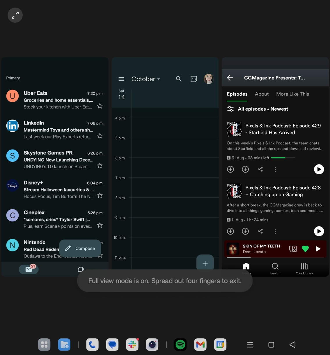 I played with this for far longer than I like to admit. It is a bit of a learning curve to get used to, and some small improvements that could be made. Bringing in a third window, originally, I had an option to bring it to the bottom, leaving two windows side-by-side and one below. At some point, this changed to three side-by-side, with me scrolling between them. Also useful, but I didn’t love this view. I still haven’t figured out if only certain apps allow the positioning at the bottom or if the device is giving me attitude.