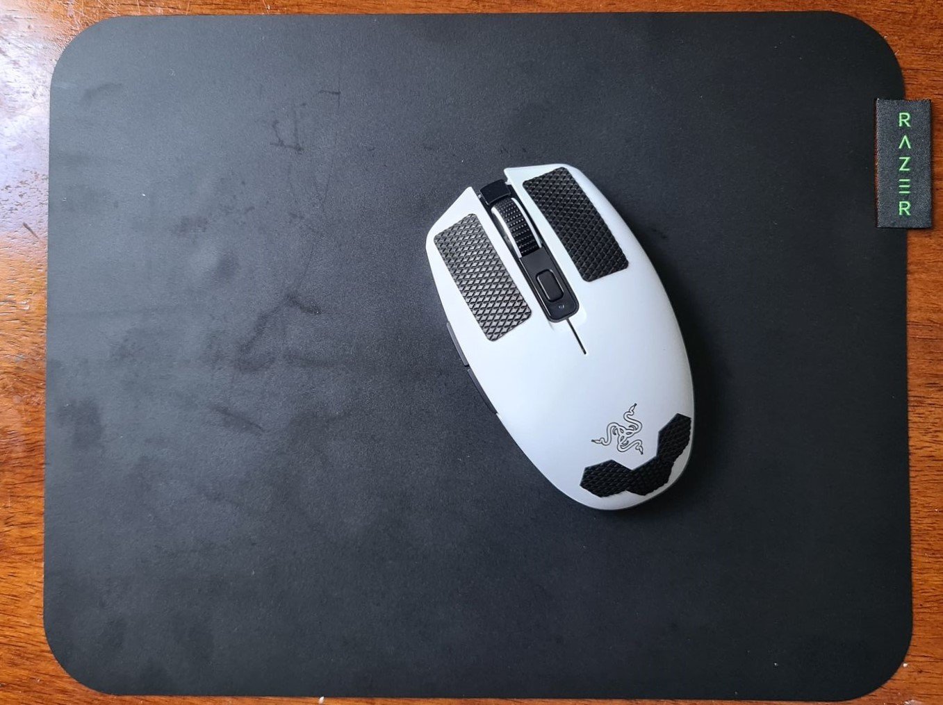 The Universal Grip Tape I ended up very fond of. I thought it wasn’t necessary but tested it out for this review’s sake. It turns out I’m obsessed with it and now I’m going to put it on everything. It made the already great mouse feel like it was built for my hand. It comes in different shapes and sizes to fit any object you need some extra grip on, even non-Razer devices. I put the black grip tape on the white Orochi V2 and I think it looks really slick.