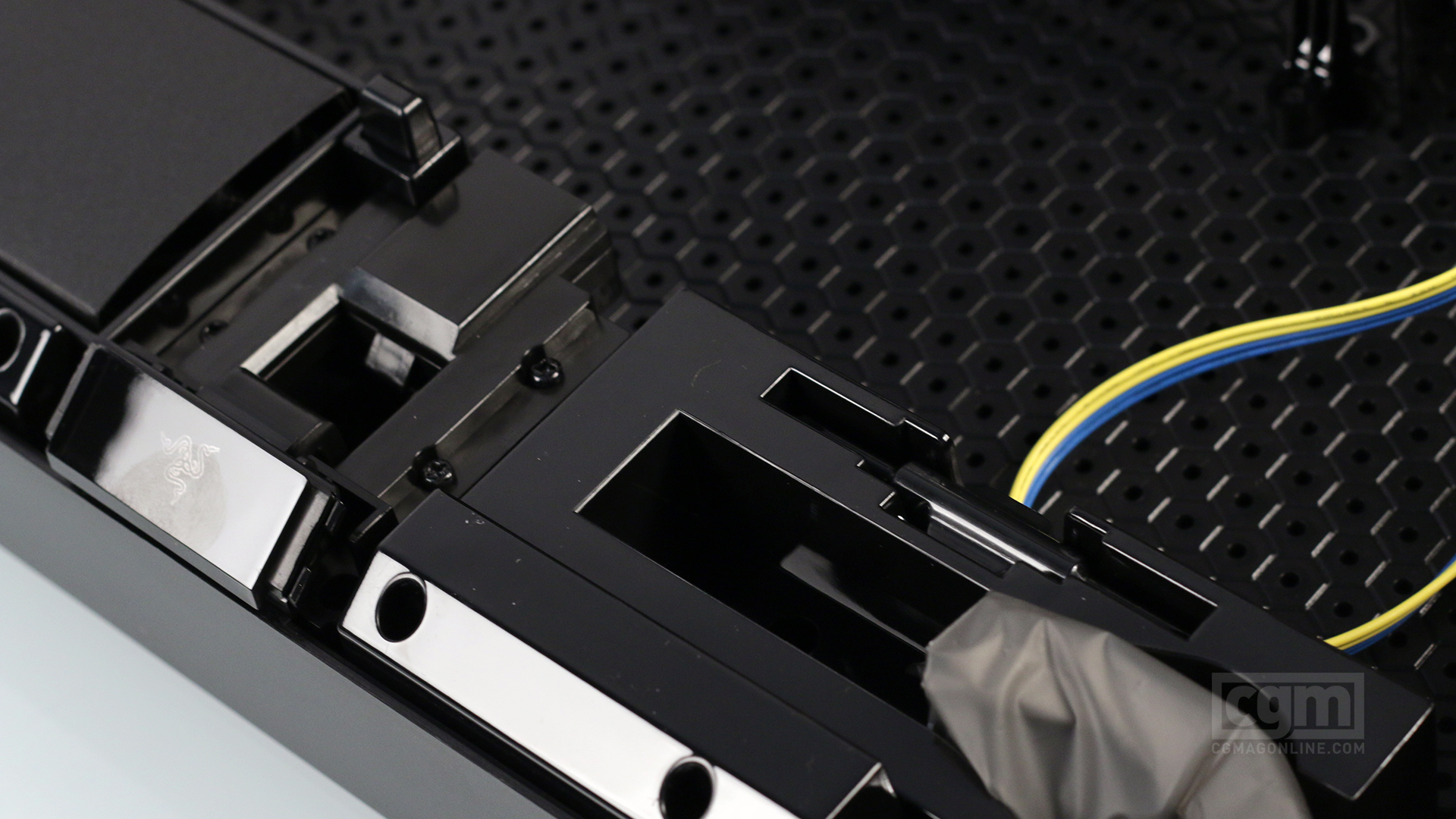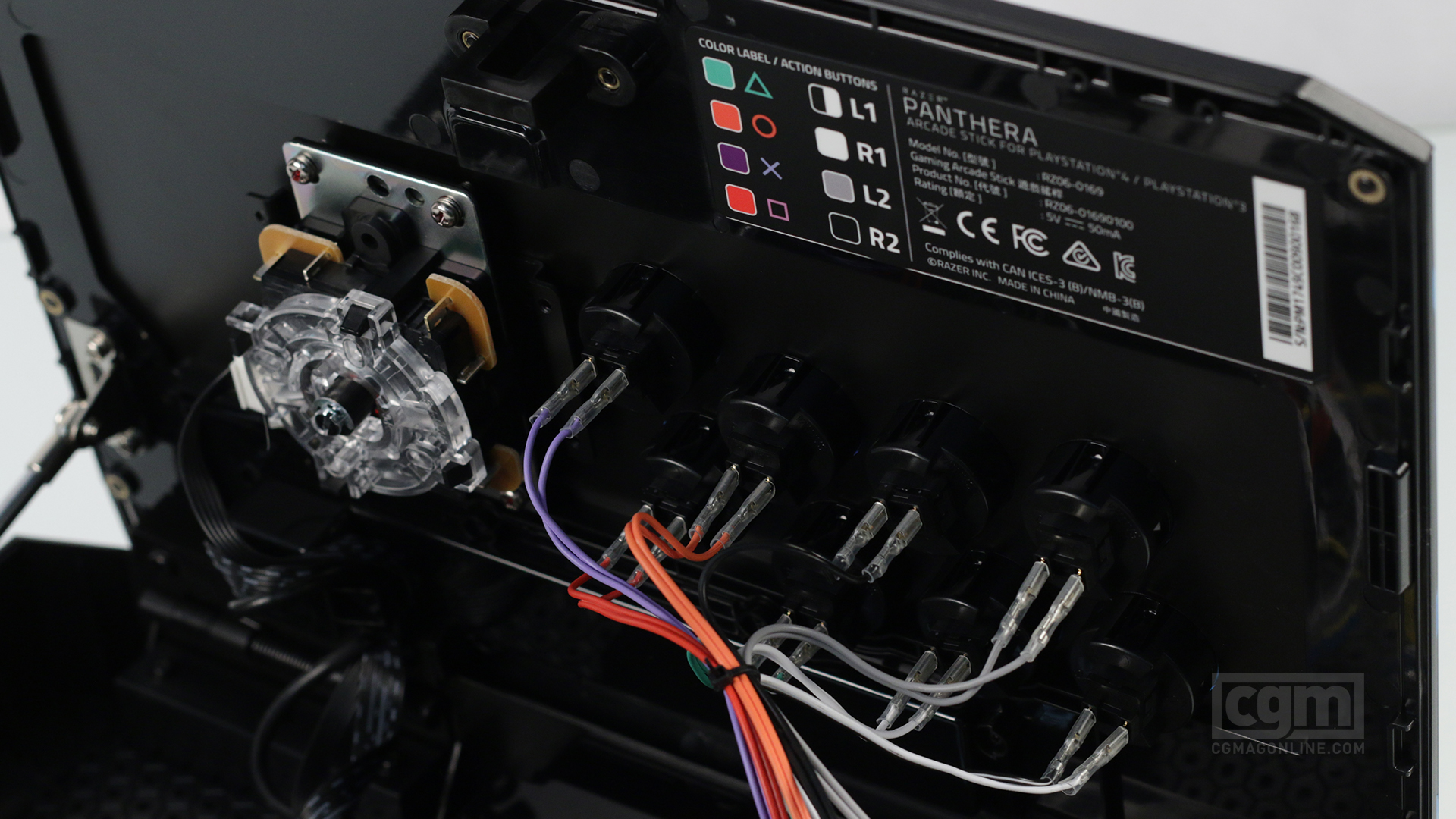 This kind of internal system was quite popular in the previous Mad Catz TE2 sticks because it also allowed the user to get their hands on their buttons and sticks if they needed to be replaced. Another nice touch Razer personally added into the internal compartment is its honeycomb designed base, which includes multiple screw mounts for new PCBs. It’s a shame, however, that one major mod friendly gesture has been left out of the Razer Panthera and that’s the ability to easily change out the artwork. The acrylic glass and Razer logo artwork of the Panthera has been glued down by Razer’s design and while it’s still possible to mod this stick to get new artwork, this a much more tedious process than an old TE2. For safety’s sake, I recommend looking at guides online to make sure you don’t damage any internals.